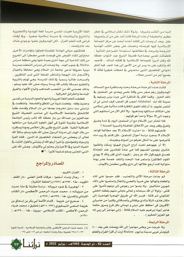 نضال البروفيسور الهندي المحدث د . محمد ضياء الرحمن الأعظمي – رحمه الله – وفراره بدينه ، ورحلته في طلب العلم ، كتبها العلامة عرفات كامل العشي في كتابه (رجال ونساء أسلموا) وحرص على اعادة التذكير بها ، ونقلها وعني بها د . محمد بن إبراهيم الشيباني رئيس مركز المخطوطات والتراث والوثائق ومجلة تراثنا.
